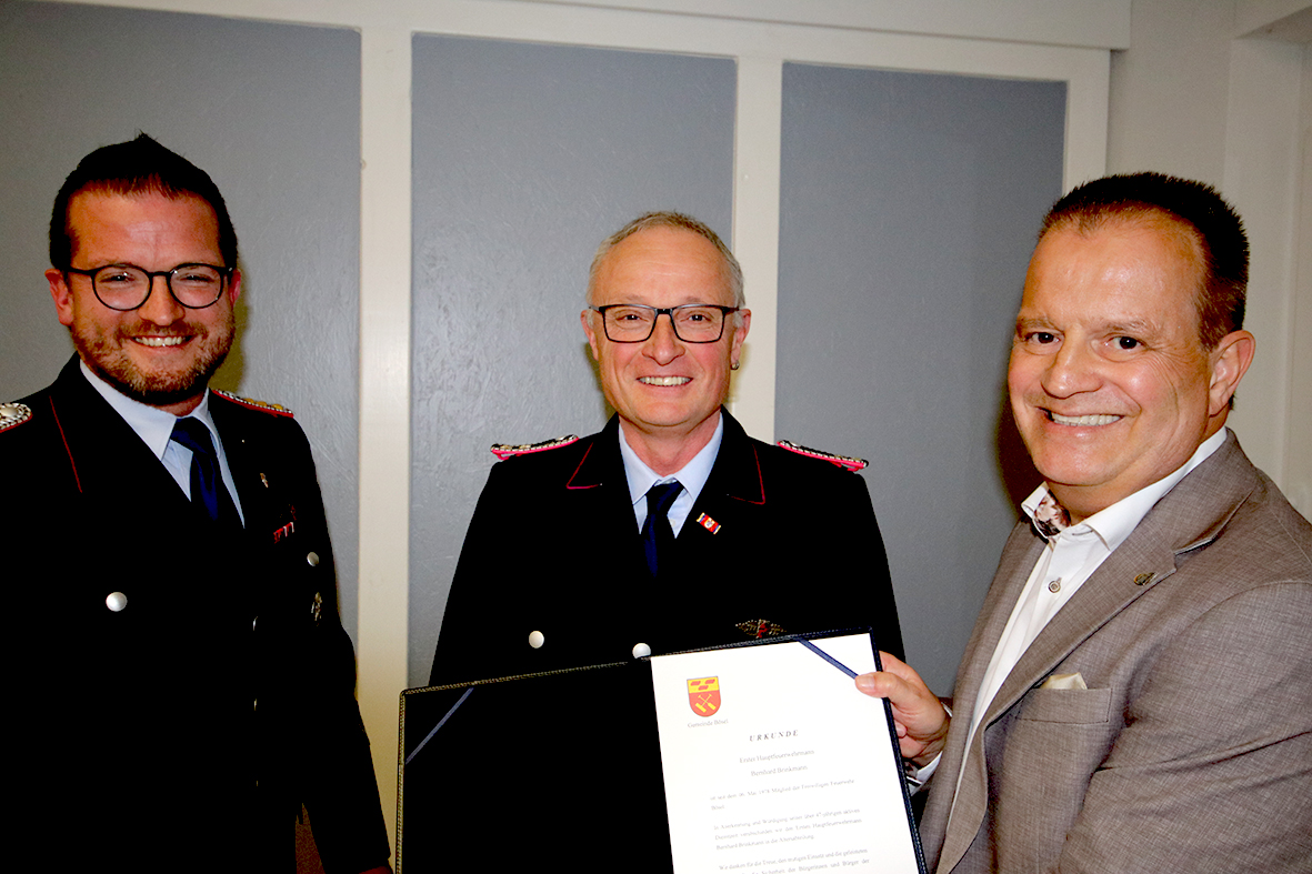Bürgermeister Hermann Block überbrachte die Grüße von Rat und Verwaltung und dankte der Feuerwehr für ihren engagierten Einsatz im vergangenen Jahr. Mit Engagement, Mut und Einsatzbereitschaft leisten die Kameradinnen und Kameraden einen unschätzbaren Dienst für die Gemeinde - oft unter schwierigsten Bedingungen und zu jeder Tages- und Nachtzeit. „Wir wissen, dass wir uns auf Sie verlassen können, und das gibt uns allen ein gutes Gefühl der Sicherheit“, dankte Block den Anwesenden.